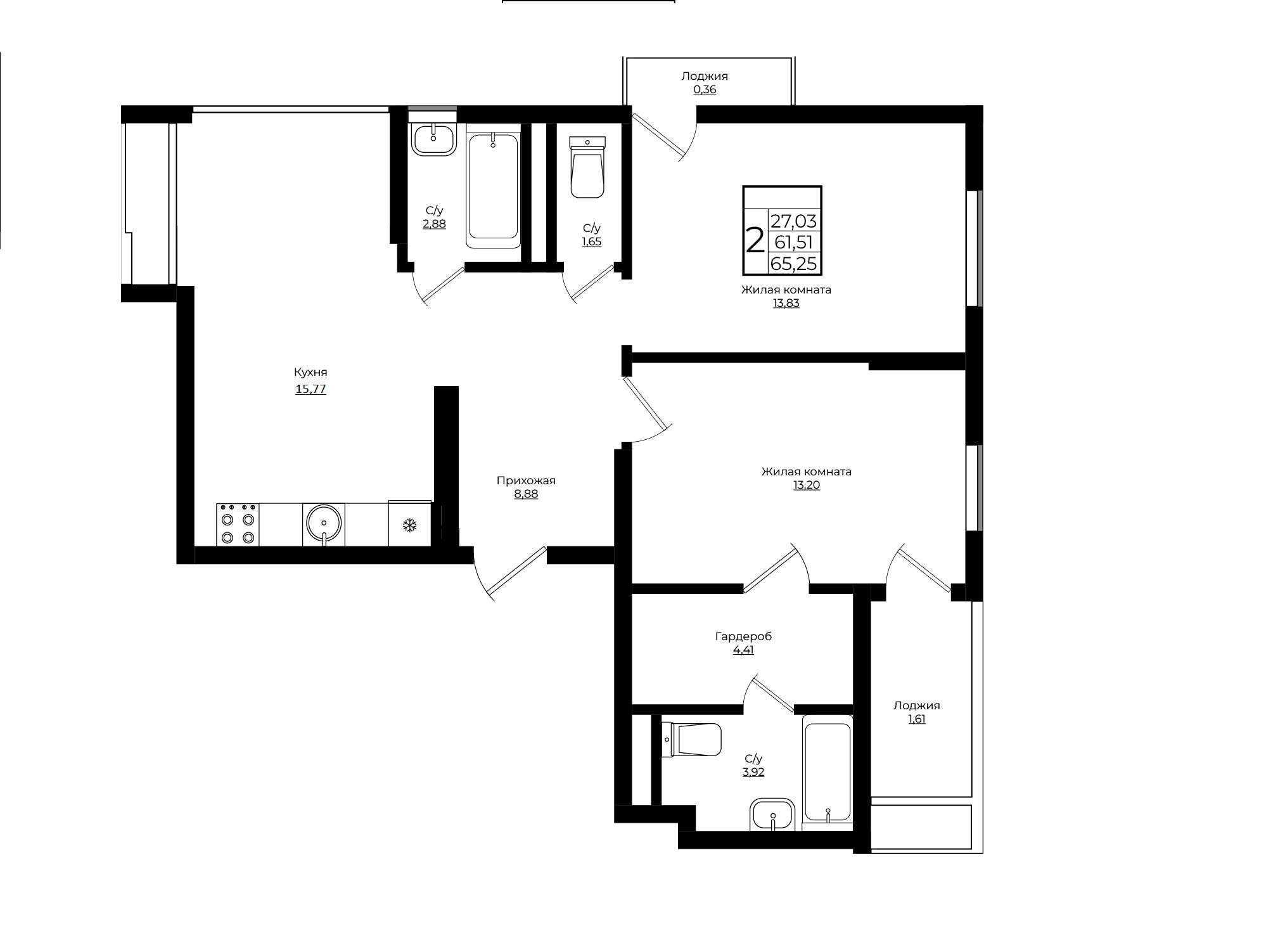 Продается 2-х комн. новостройка, 66 кв.м., 9/9 эт