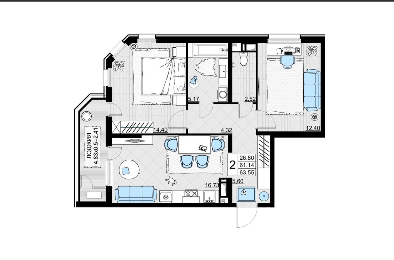 Продается 2-х комн. новостройка, 66 кв.м., 7/18 эт