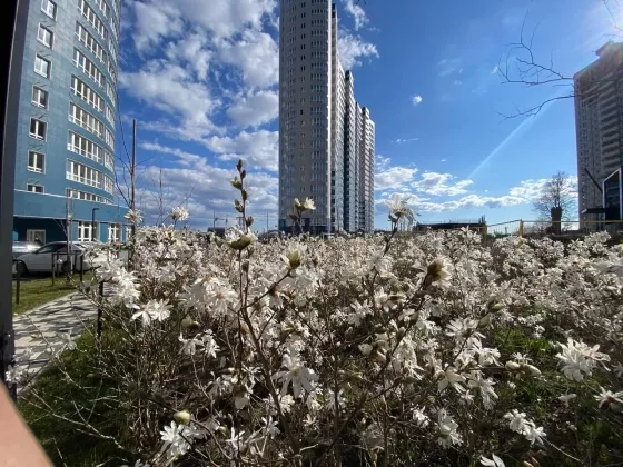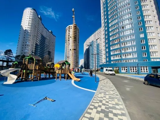 перед домом ведётся строительство школы для одарённых детей "Наследие" (филиал сочинского "Сириуса"), до трамвайной остановке 4 минуты ходьбы.