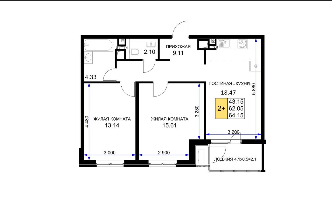 Продается 2-х комн. новостройка, 66 кв.м., 7/16 эт
