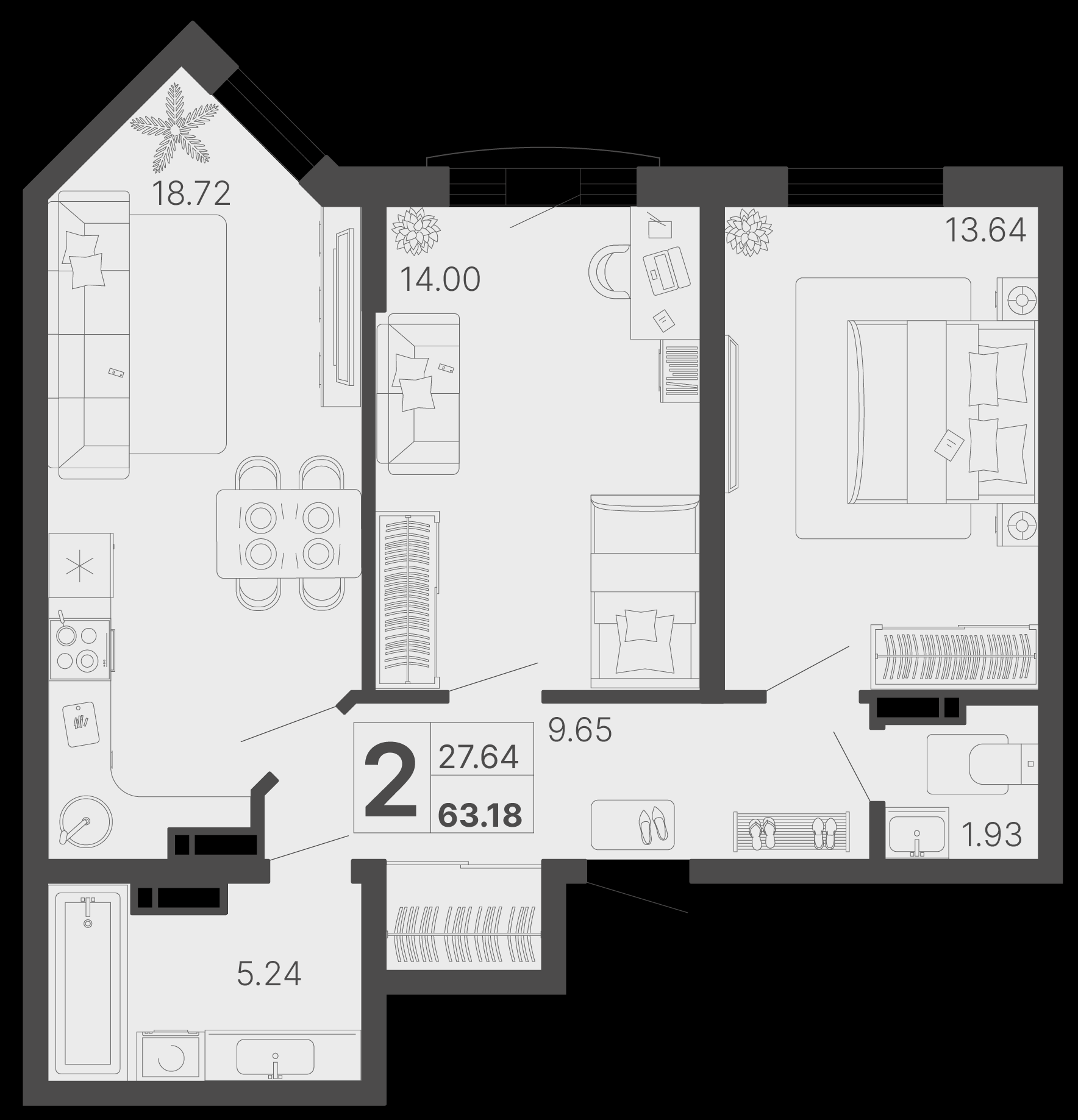 Продается 2-х комн. новостройка, 64 кв.м., 11/16 эт
