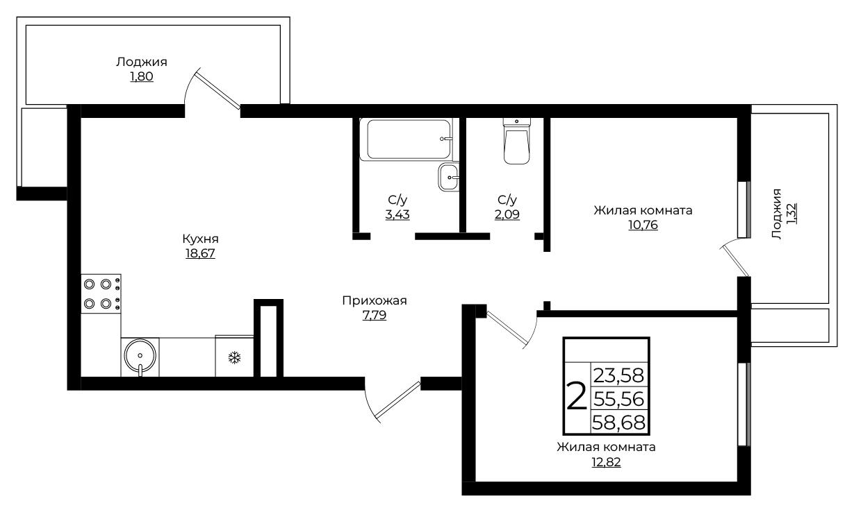 Продается 2-х комн. новостройка, 63 кв.м., 5/9 эт