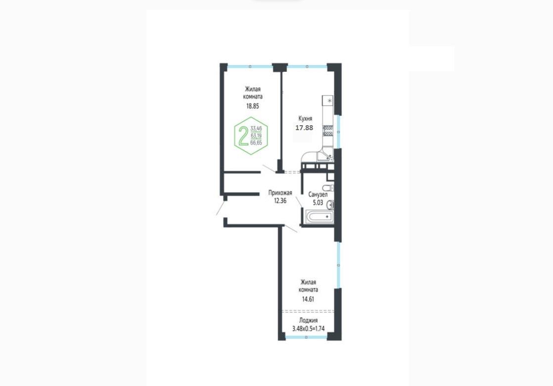 Продается 2-х комн. новостройка, 68 кв.м., 7/21 эт