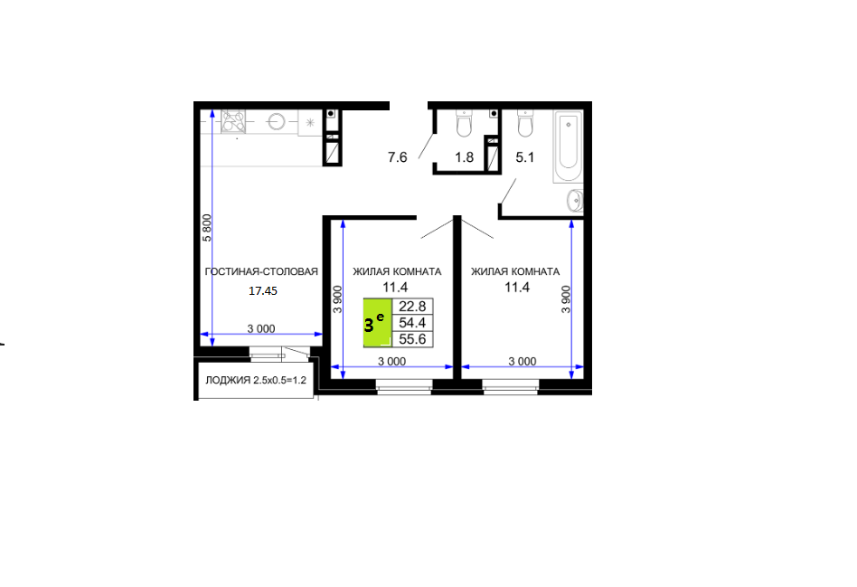 Продается 2-х комн. новостройка, 66 кв.м., 4/16 эт