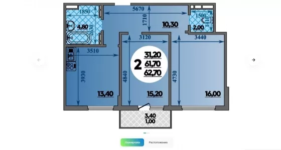 Продается 2-х комн. новостройка, 63 кв.м., 7/18 эт