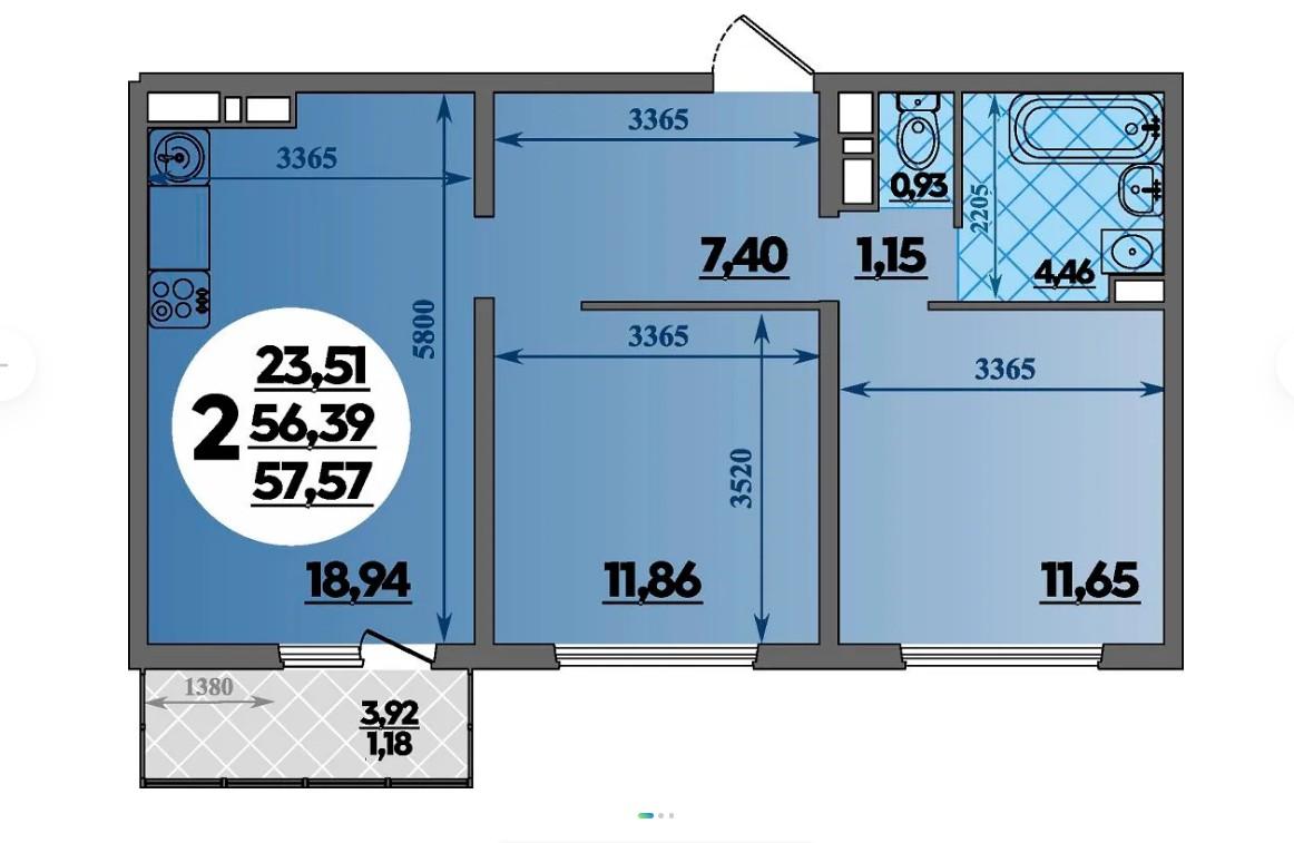 Продается 2-х комн. новостройка, 56 кв.м., 3/16 эт