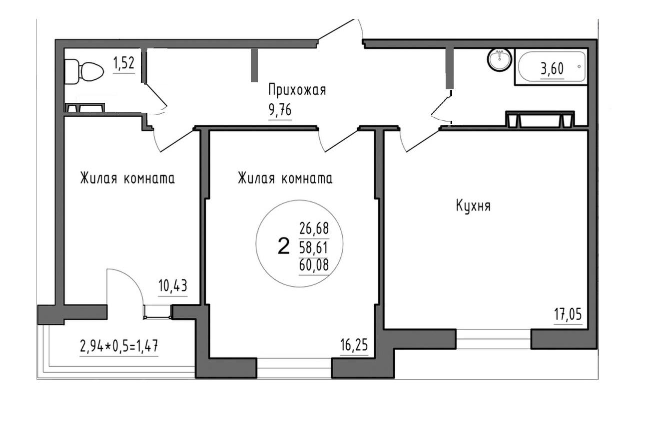 Продается 2-х комн. новостройка, 61 кв.м., 5/16 эт