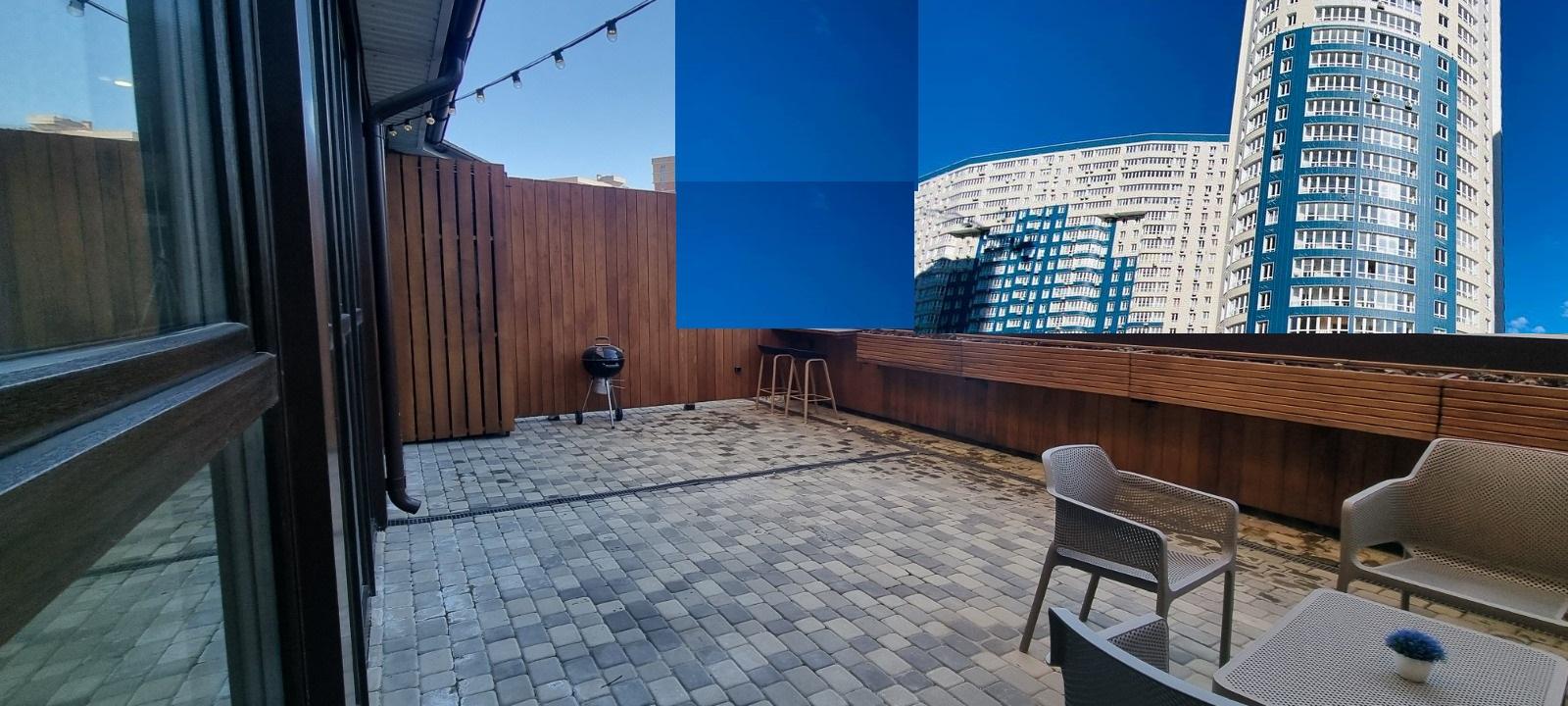 - ЖК расположен в Центральном окpугe г. Краснодар на берегу p.Kубaнь.