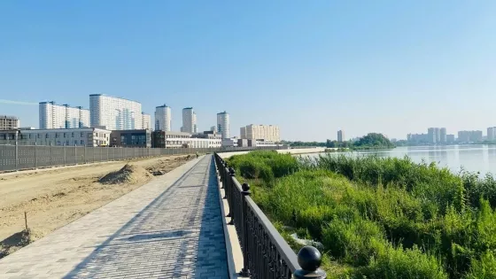 - ЖК расположен в Центральном окpугe г. Краснодар на берегу p.Kубaнь.