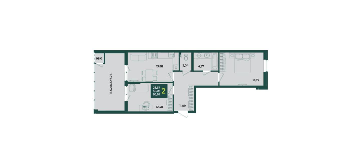 Продается 2-х комн. новостройка, 71 кв.м., 8/21 эт