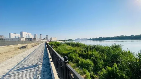 - ЖК расположен в Центральном окpугe г. Краснодар на берегу p.Kубaнь.