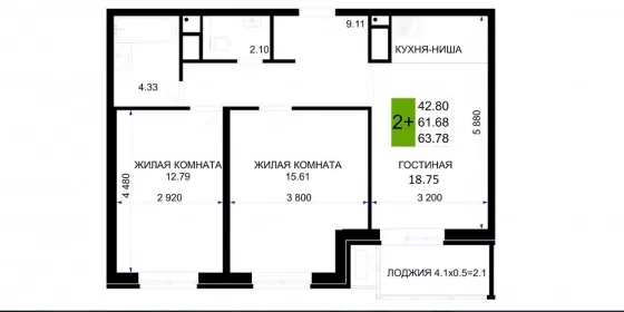 | Площадь, кв.м. | 66 |