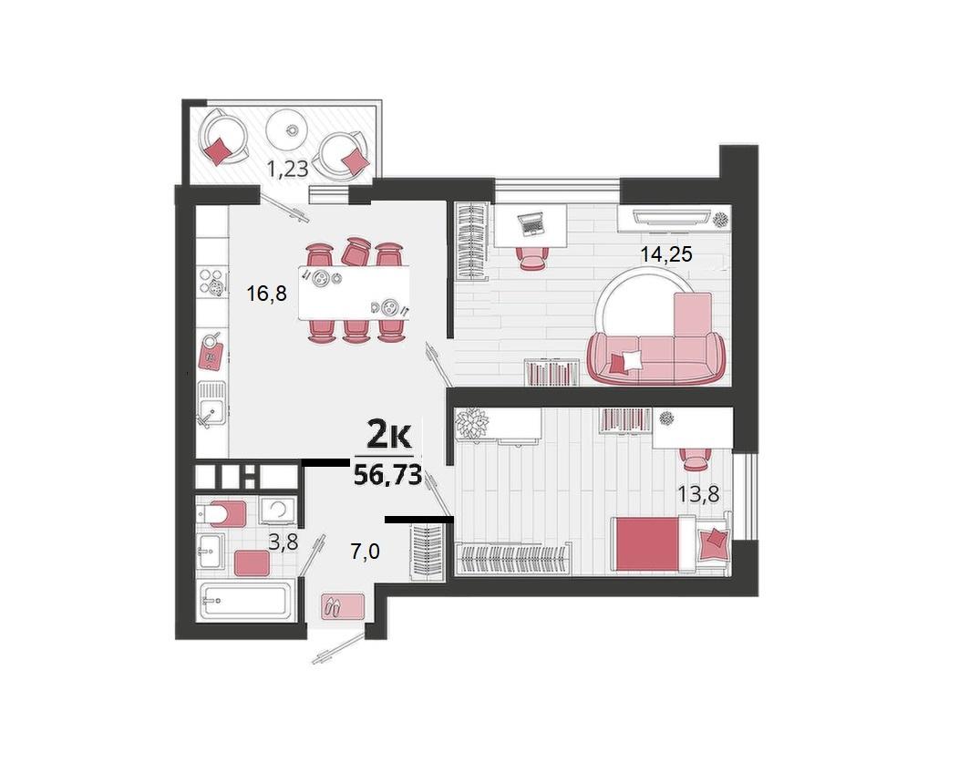 Продается 2-х комн. новостройка, 61 кв.м., 10/18 эт