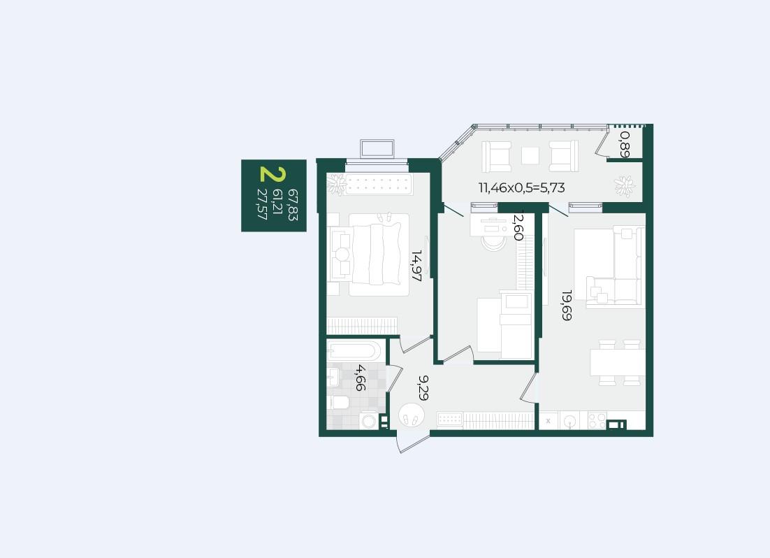 | Площадь кухни, кв.м. | 2 |