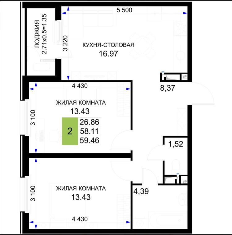 Продается 2-х комн. новостройка, 66 кв.м., 5/18 эт