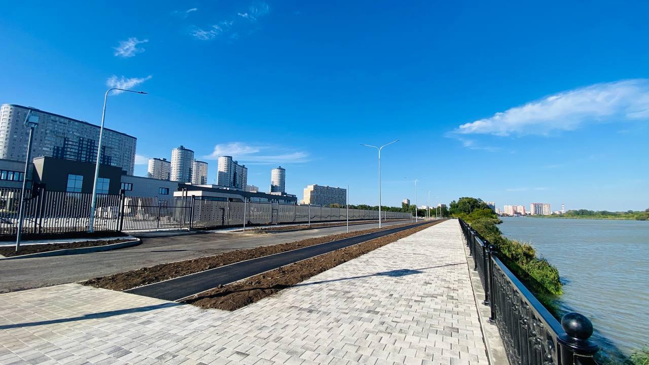 - ЖК расположен в Центральном окpугe г. Краснодар на берегу p.Kубaнь.