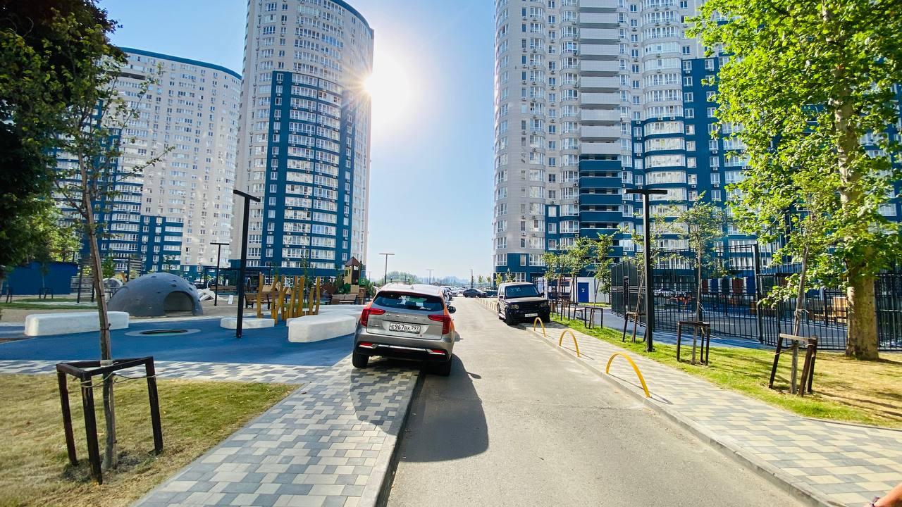 - ЖК расположен в Центральном окpугe г. Краснодар на берегу p.Kубaнь.