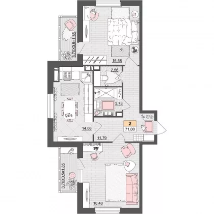 | Комнат в квартире | 2 |