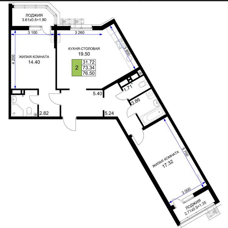 Продается 2-х комн. новостройка, 78 кв.м., 6/18 эт