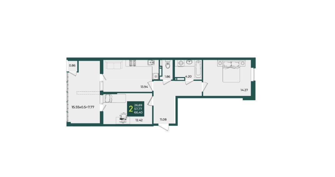 | Комнат в квартире | 2 |