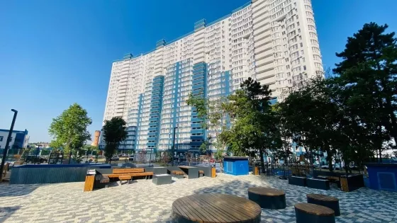 - ЖК расположен в Центральном окpугe г. Краснодар на берегу p.Kубaнь.