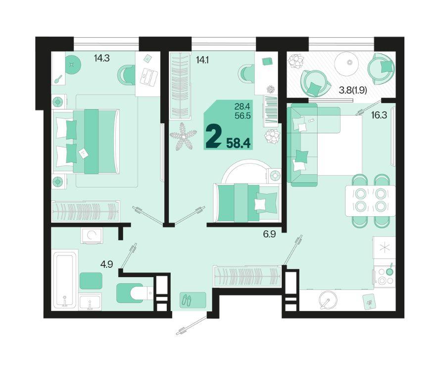 Продается 2-х комн. новостройка, 61 кв.м., 6/18 эт