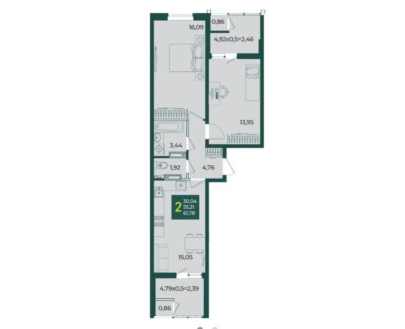 Продается 2-х комн. новостройка, 66 кв.м., 12/18 эт