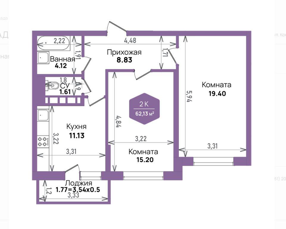 Продается 2-х комн. новостройка, 61 кв.м., 6/24 эт