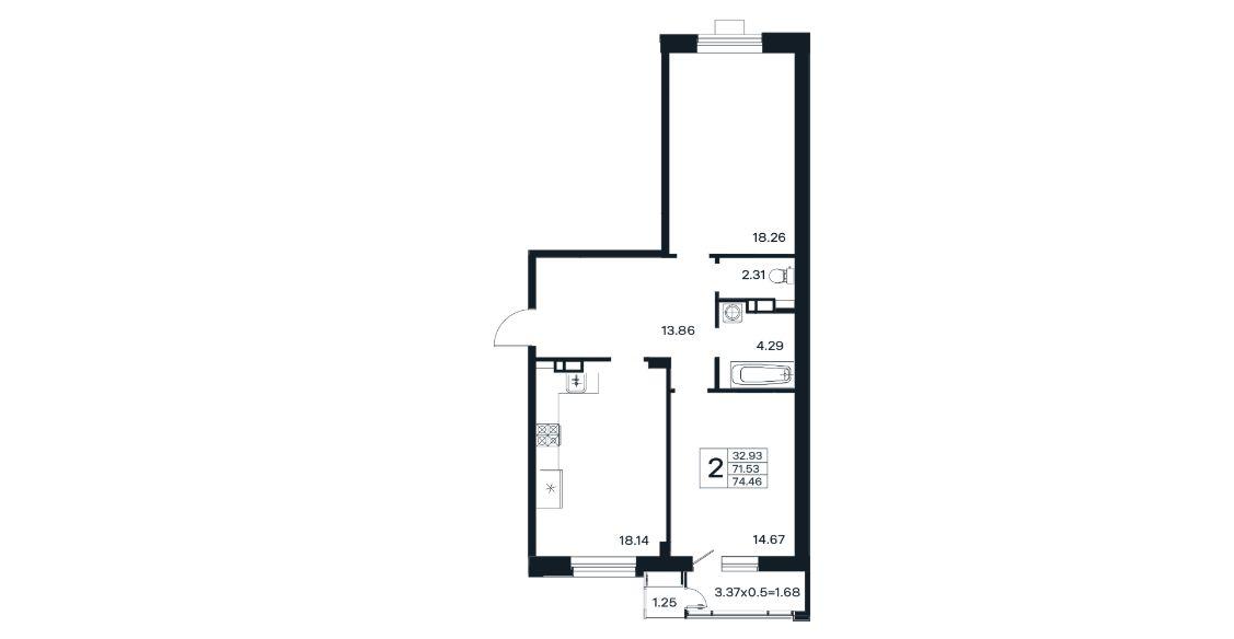Продается 2-х комн. новостройка, 74 кв.м., 8/12 эт