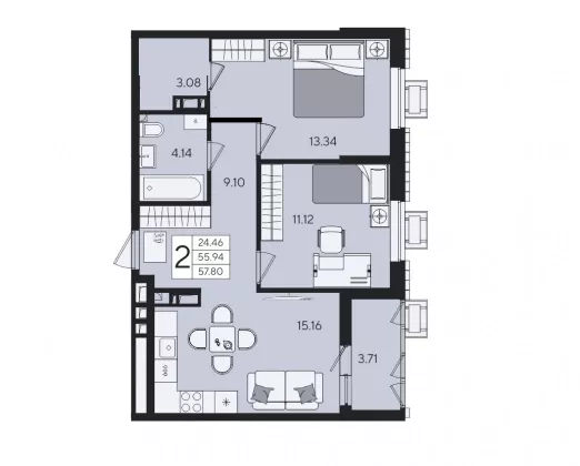 | Площадь, кв.м. | 57 |