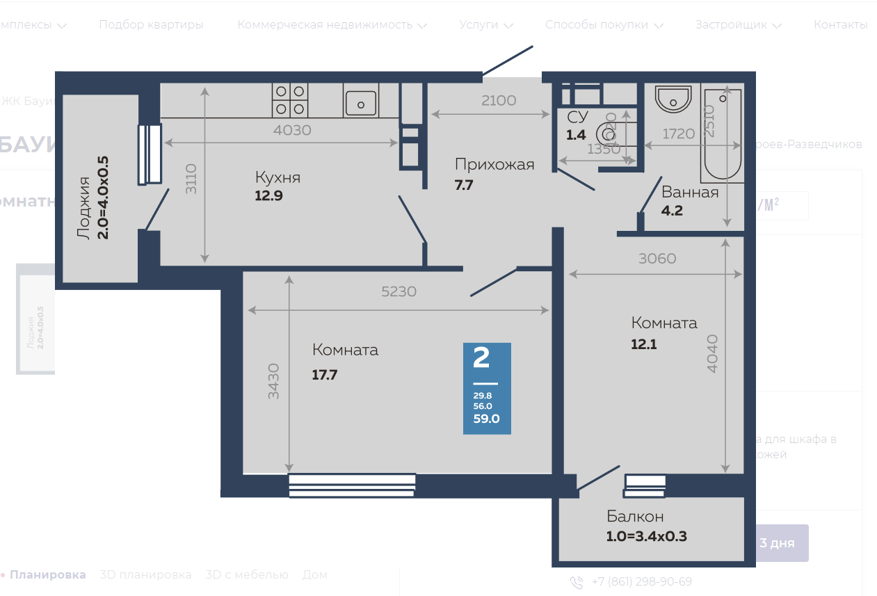 Продается 2-х комн. новостройка, 62 кв.м., 21/21 эт