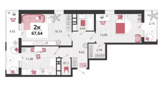 Продается 2-х комн. новостройка, 69 кв.м., 6/18 эт
