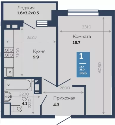 | Комнат в квартире | 1 |