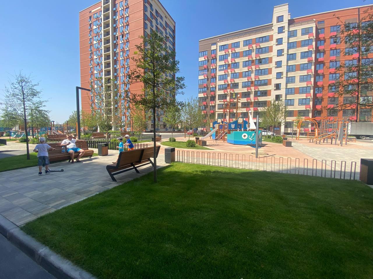 колясочная зона и помывочная для лап собачек ,и туалет на первом этаже для жителе дома, так же есть площадка для собак. продуманный ландшафтный красочные детские площадки и, много зелени и свежего воздуха.