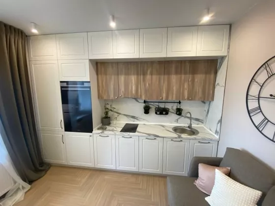 С большой кухней и лоджией ,окна смотрят на детскую площадку ,Охраняемый дом с видеонаблюдением .