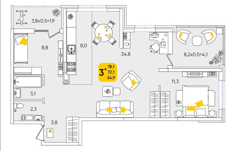 Продается 3-х комн. новостройка, 81 кв.м., 9/9 эт