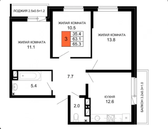 Продается 3-х комн. новостройка, 65 кв.м., 8/16 эт