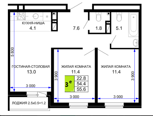 Продается 3-х комн. новостройка, 66 кв.м., 5/16 эт