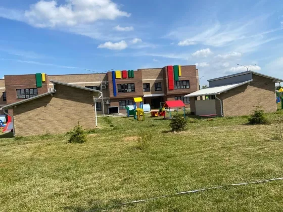 Вокруг дома : 3- школы , 4-садика ,торговый центр и поликлиника .