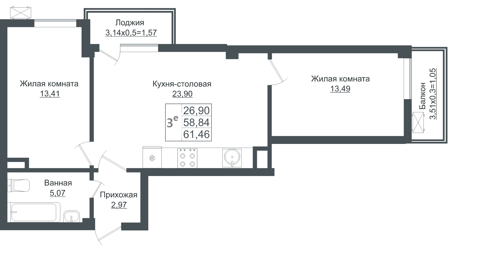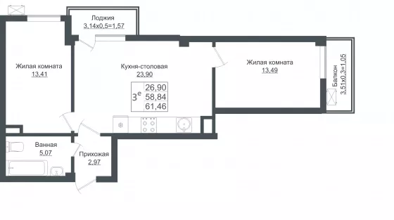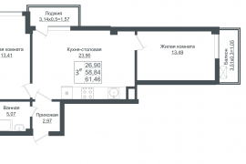 Продается 3-х комн. новостройка, 62 кв.м., 4/8 эт