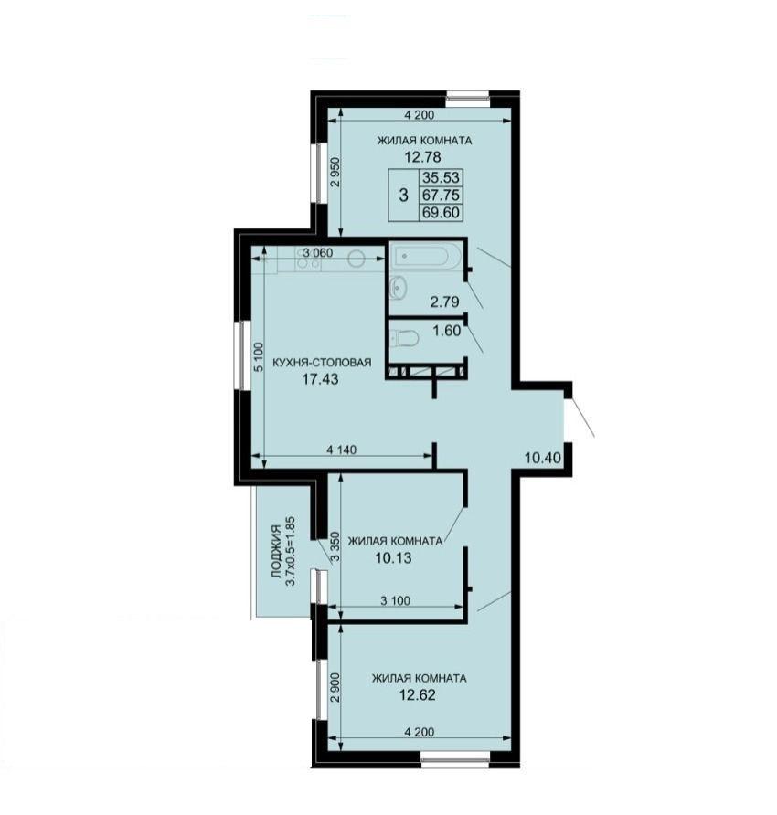Продается 3-х комн. новостройка, 71 кв.м., 4/9 эт