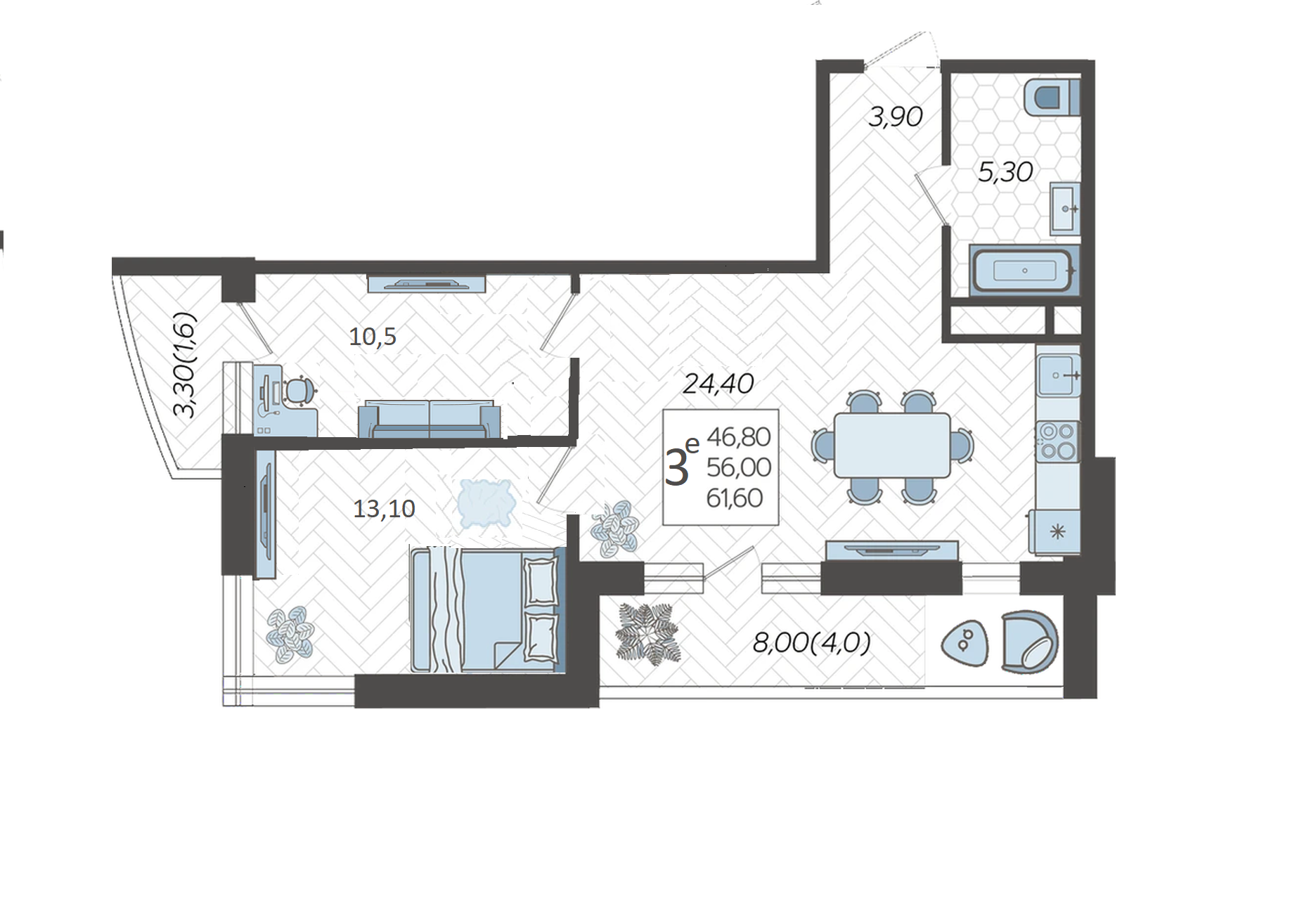 Продается 3-х комн. новостройка, 61 кв.м., 5/16 эт
