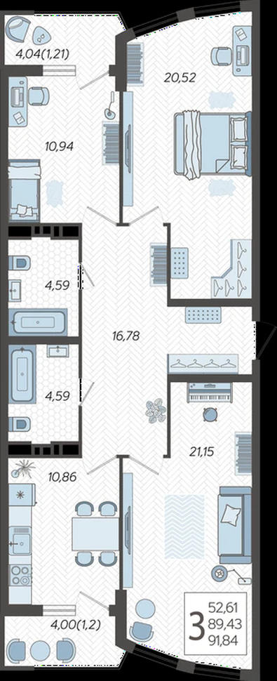 Продается 3-х комн. новостройка, 95 кв.м., 8/16 эт