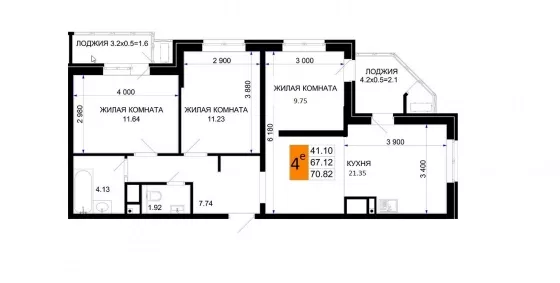 Продается 3-х комн. новостройка, 71 кв.м., 9/16 эт