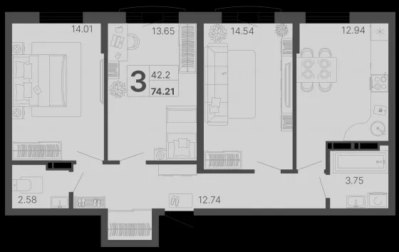 | Площадь, кв.м. | 75 |