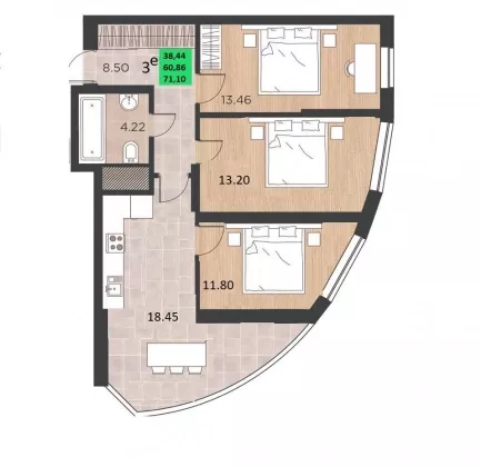 Продается 3-х комн. новостройка, 71 кв.м., 2/16 эт