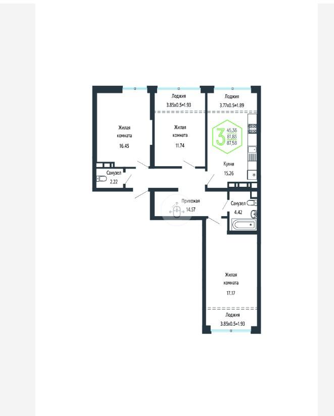 Продается 3-х комн. новостройка, 91 кв.м., 7/19 эт