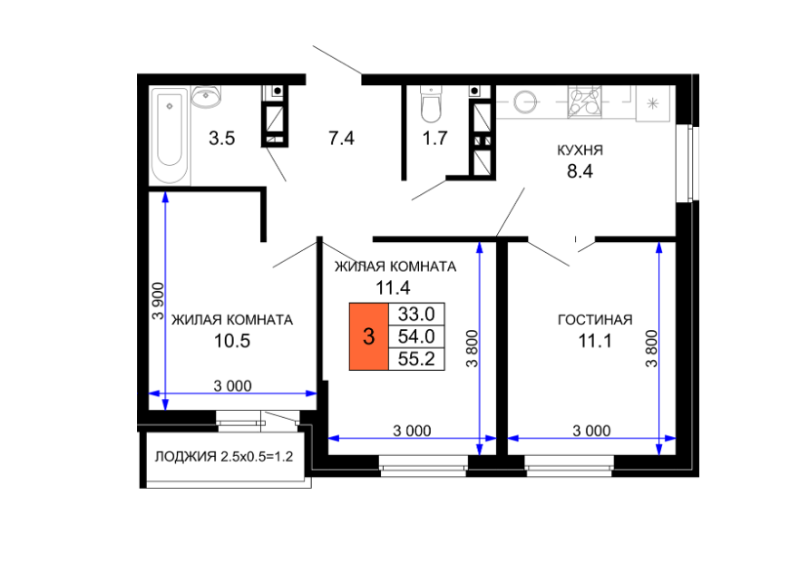 Продается 2-х комн. новостройка, 56 кв.м., 10/16 эт