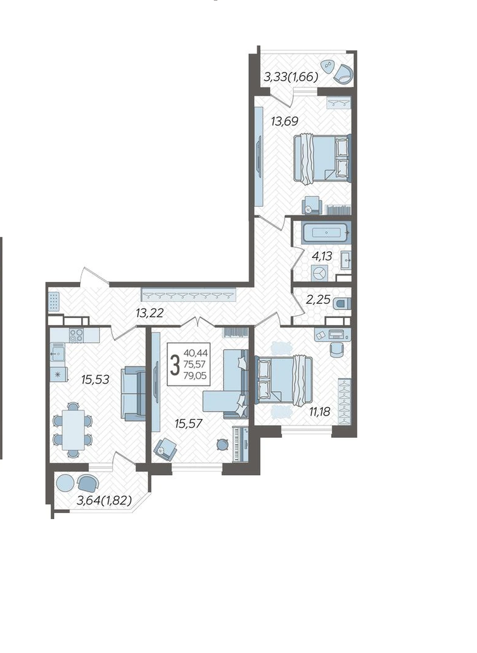 | Комнат в квартире | 3 |