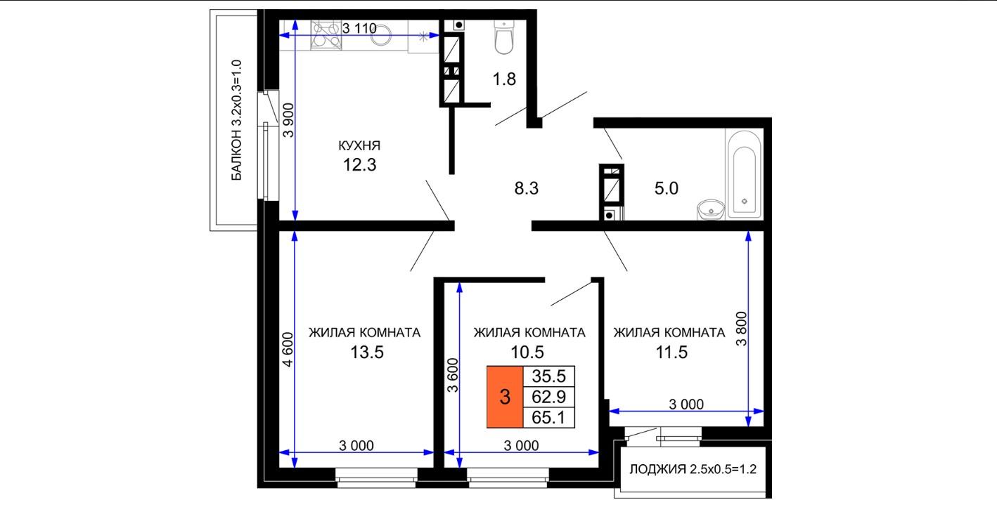 | Комнат в квартире | 3 |